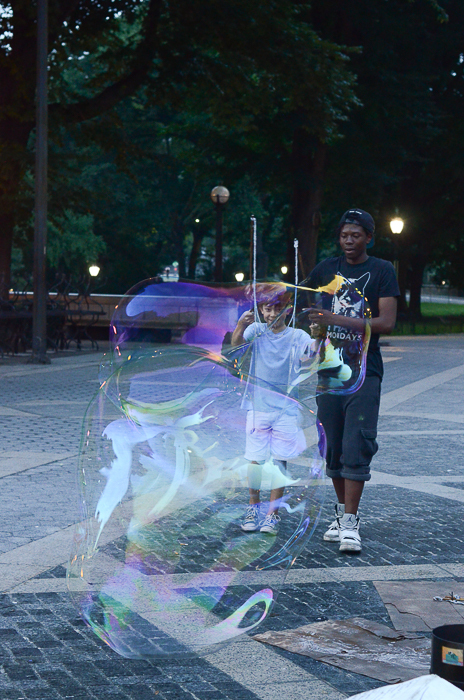 We made it to Central Park as the sun was setting. Some people, who were making these giant bubbles at the gate, invited my kids to join them. Of course they were eager to do so.